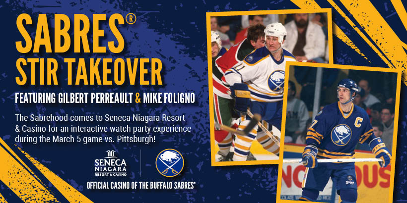 Game day arena energy comes to Stir for a unique fan experience filled with games, giveaways, and non-stop Sabrehood excitement as the Buffalo Sabres® take on Pittsburgh on the massive 43-foot Stir screen!
